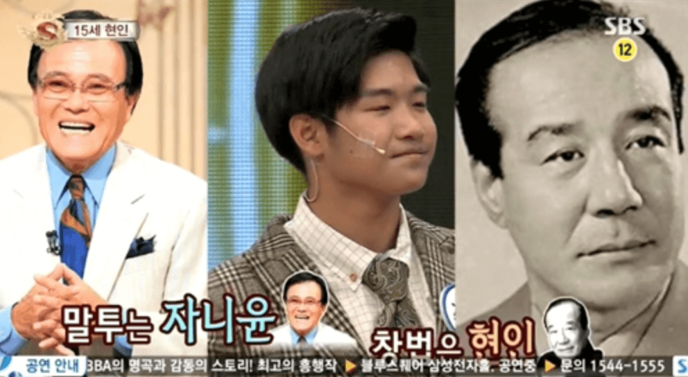 15살 중학생 시절 스타킹에 출연하여 2002년 타계한 전설적인 가수 故 현인의 대표곡 '신라의 달밤'을 부른바 있습니다. 당시 앳된 얼굴로 시청자들을 놀라게 했으며 목소리와, 손동작 그리고 말투까지 완벽하게 흉내내어 아주 인상 깊었습니다. 뿐만아니라 남인수, 김정구, 이난영의 노래를 불러 관심을 모으기도 했습니다. 그리고 지난 9월 2일 KBS2의 '대국민 토크쇼-안녕하세요'에 현인을 비롯해 1940년대 가수에 빠져있는 애늙은이 아들로 어머니와 함께 동반 출연하기도 했습니다.
