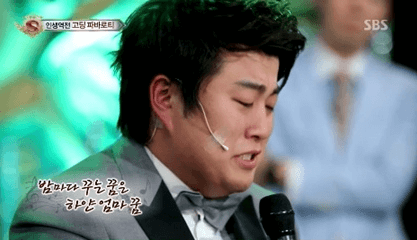 과거 2013년에 고딩 파파로티로 스타킹에 출연하였었는데 돌아가신 할머니를 생각하며 "찔레꽃"을 부르다 눈물을 쏟고 패널들 뿐 아니라 시청자들까지 눈물을 쏟았습니다. 할머니를 사모하는 감정이 너무나도 깊이 드러났고 할머니가 돌아가셨을 당시 너무 슬픈 나머지 겁이나 할머니 임종을 못 지켜드렸다며 안타까움을 드러냈습니다.